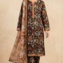 This beautiful 3-piece suit features a rich black base adorned with intricate floral prints in warm tones, giving it a sophisticated and graceful look.